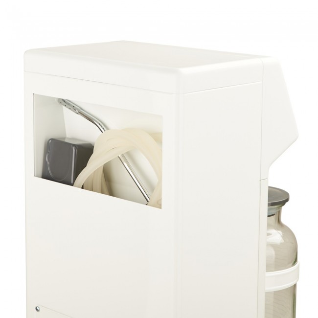 Отсасыватель 7А легок в обслуживании, обладает надежным механизмом, металлическим корпусом с пластиковой панелью управления, снабжен антибактериальным фильтром и механической защитой от переполнения. Оснащён колёсиками и педалью дистанционного включения. Работает с низким уровнем шума.