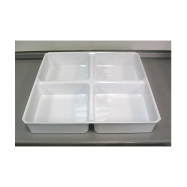 Вставка разделена на четыре ячейки габариты каждой 200мм ширина, 200мм глубина, 75мм высота.