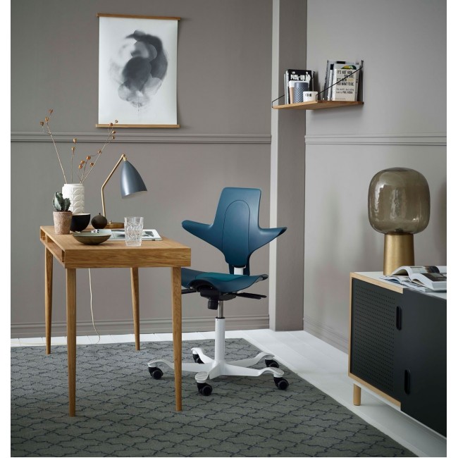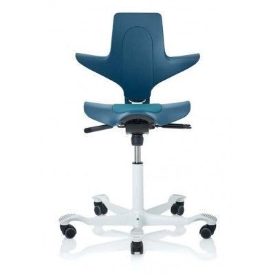 HAG Capisco Puls 8010 - это пластиковый стул с сиденьем и спинкой. Сиденье имеет встроенную подушку. Седло регулируется по высоте, вплоть до положения стоя. Угол наклона и высоту спинки также можно отрегулировать.