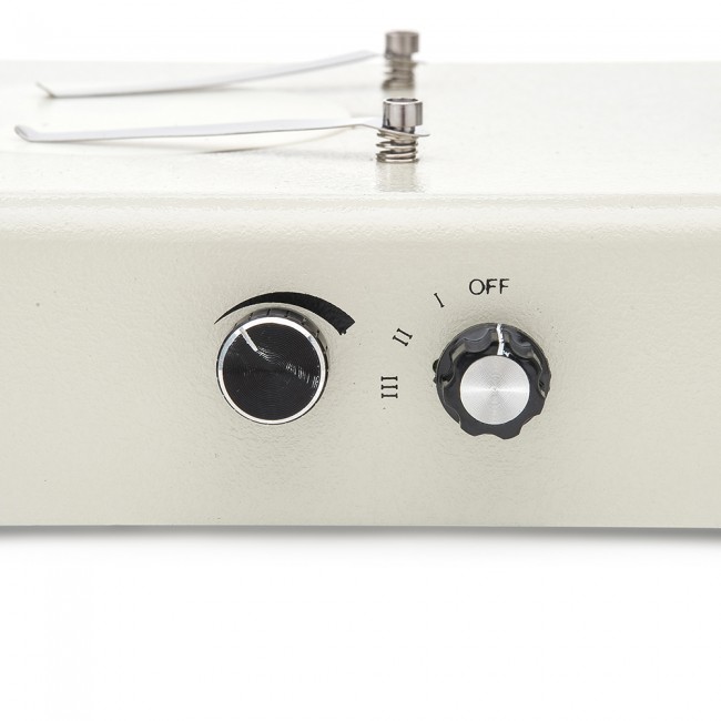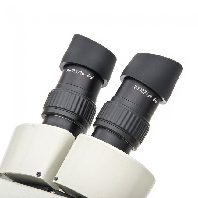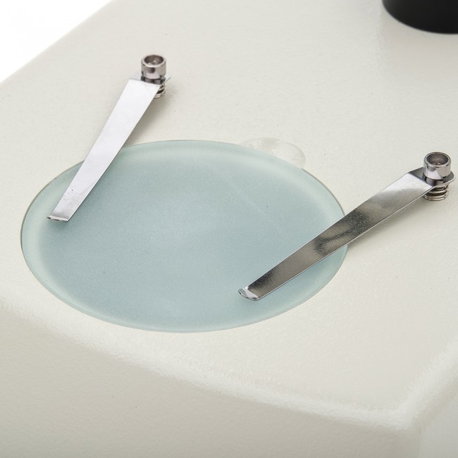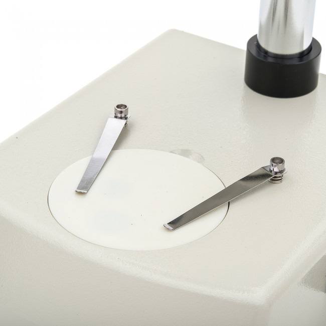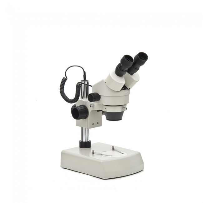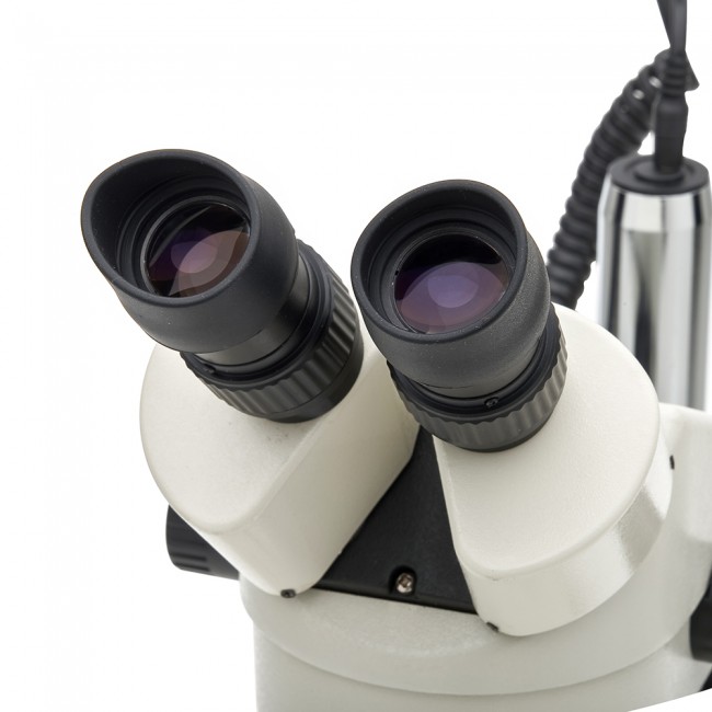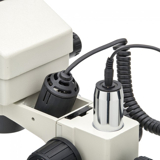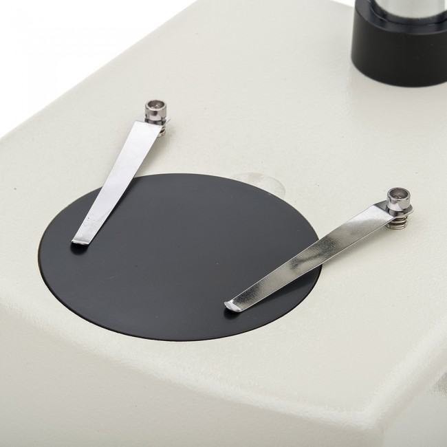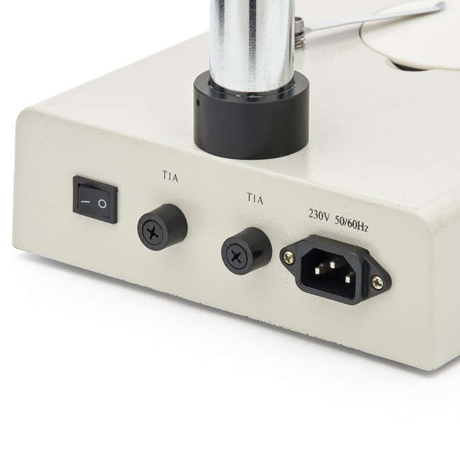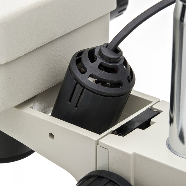 • Осветитель с галогеновой или вольфрамовой лампой 12 В, 10 Вт, и встроенным в основание микроскопа блоком питания.