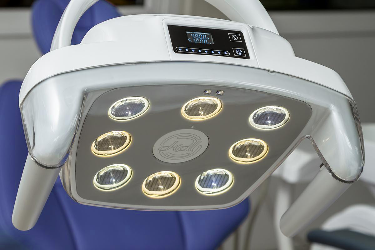 • Touchscreen-панель управления креслом, светильником и плевательницей, с функцией подогрева воды.