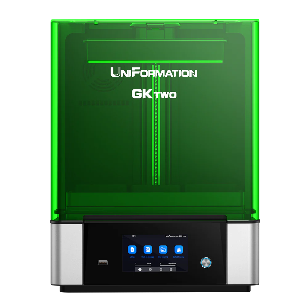 Модель GKtwo использует матричный параллельный источник света. Разрешение монохромной матрицы с диагональю 10.3 дюйма составляет 7680x4320 пикселей, а точность по оси XY – 29,6 микрон. В результате появляется возможность не только добиваться впечатляющей детализации у объёмных моделей, но и выпускать целые партии миниатюрных изделий с невероятной точностью. Кроме того, улучшенная защитная плёнка на ЖК-матрице помогает защитить её от любой случайной утечки фотополимерной смолы.