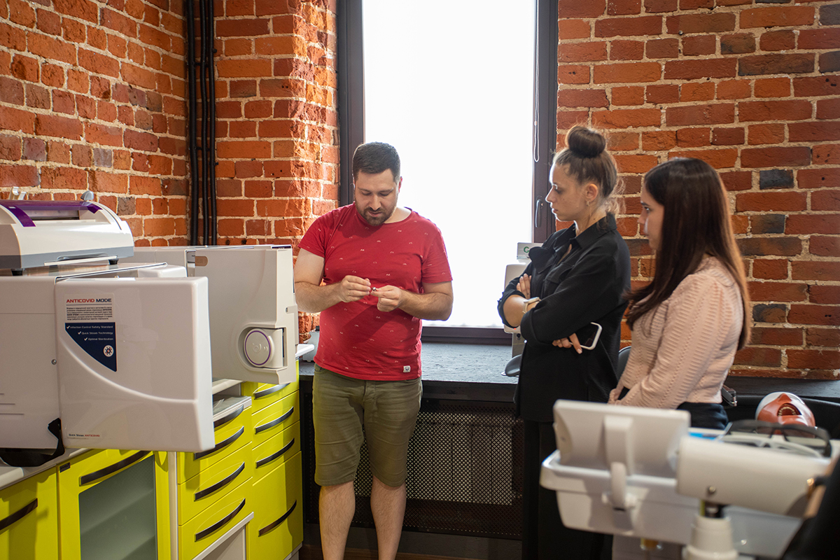 4 августа в Green Dent Academy прошёл семинар для ассистентов. Лектор Недоступова Элиза Дмитриевна рассказала, как общаться с пациентами, как правильно подготовить кабинет к приёму, а также все особенности и специфику работы. Зимина Елена Владимировна, представитель компании Dürr Dental, на практике показала, что происходит с инструментами при неправильной обработке, а также рассказала как этого избежать. В демозале компании Green Dent Зобнин Антон наглядно продемонстрировал работу стоматологического автоклава, рассказал как автоклавировать инструменты и правильно эксплуатировать медицинское изделие. Помимо этого, Элиза Дмитриевна на стоматологической установке показала, что должен делать ассистент на приёме.