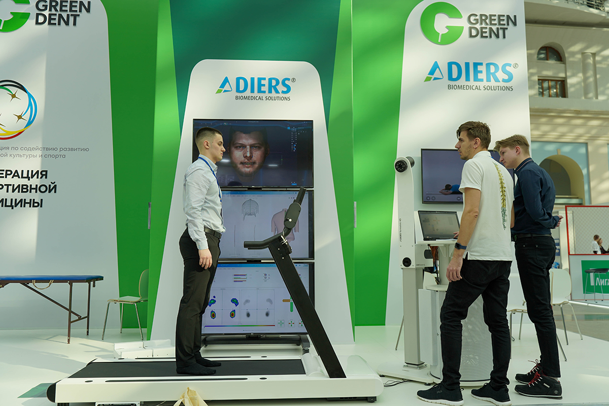Чтобы прояснить ситуацию, рассказываем: дорожка – это инновационная технология от компании GREEN DENT. С её помощью можно провести комплексный анализ всего опорно-двигательного аппарата. Почему они ходят по ней босиком? Только так можно добиться функционального воспроизведения силы давления стоп во время ходьбы, ну а шпатель…шпатель для того, чтобы разомкнуть окклюзию для более точного выявления проблемы.